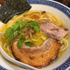 ひと口いただけば・・・そうそうこれこれと感じるスープにぷっつり細麺が美味しい塩ラーメンです。塩の味が前面にあるようにも感じますが動物系でしょうか味わい深く、海苔の上のパウダーも深みに一役買っていますね。
