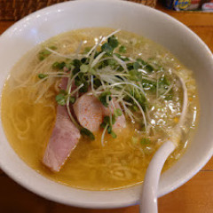 レギュラーメニューを注文。透き通った鶏ベースのスープに黄金色にも見える鶏油が綺麗な塩ラーメン。麺は自家製の細麺。相変わらず美味しい塩ラーメンをいただいてきました。