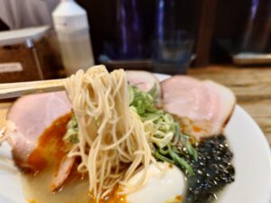 ひさびさでしたが気持ちライトに感じましたね。牡蠣の旨味のあるスープ、塩のスープがベースで今回は辛アヒージョを乗せてもらうトッピング。辛味が程よく感じられるスープですね。