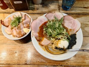 「特製牡蠣塩ラーメン+辛アヒージョ+肉丼」