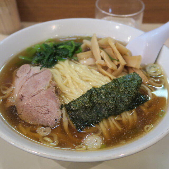 クラシカルスタイルに感じる醤油スープ、すっきりながら旨味あるスープに太めの麺が美味しいつけ麺ですね。海苔が良いアクセントになっていますね。