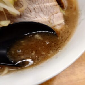 ヤサイはもやしとキャベツです。ヤサイを食べ進めるとスープが出てきて旨味あるスープが美味しい二郎ラーメン。麺は太めで少しやわらかめ、チャーシューは2種類のチャーシューでこれまたうまうまですね。限定トッピングの肉ワンタン3個。小ぶりですがこれも価格以上によいアクセントですね。