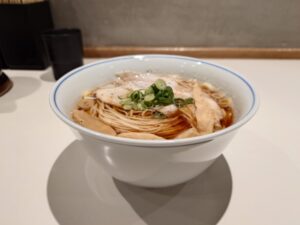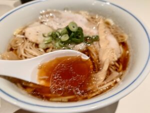 この日は比内地鶏、姫っこ地鶏、名古屋コーチン、地頭鶏のブレンドとのことですが。他では食べたことがないぐらい鶏の旨味が折り重なる美味しいスープ。もちろんこだわりの醤油タレと共に非常に美味しいラーメンですね!