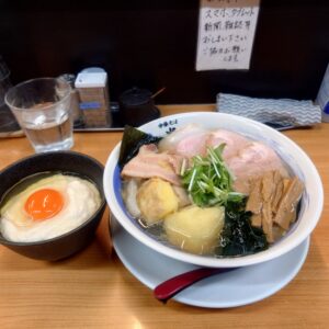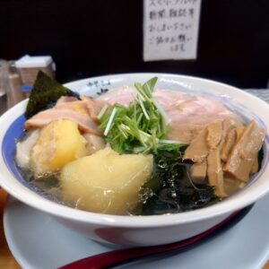 塩のスープはあさり×ベーコン。ポトフのような雰囲気のあるスープが美味しいラーメンです。じゃがいもやベーコンなど野菜もベーコンもよく煮込まれておりやわらかくうまうまな具材ですね。