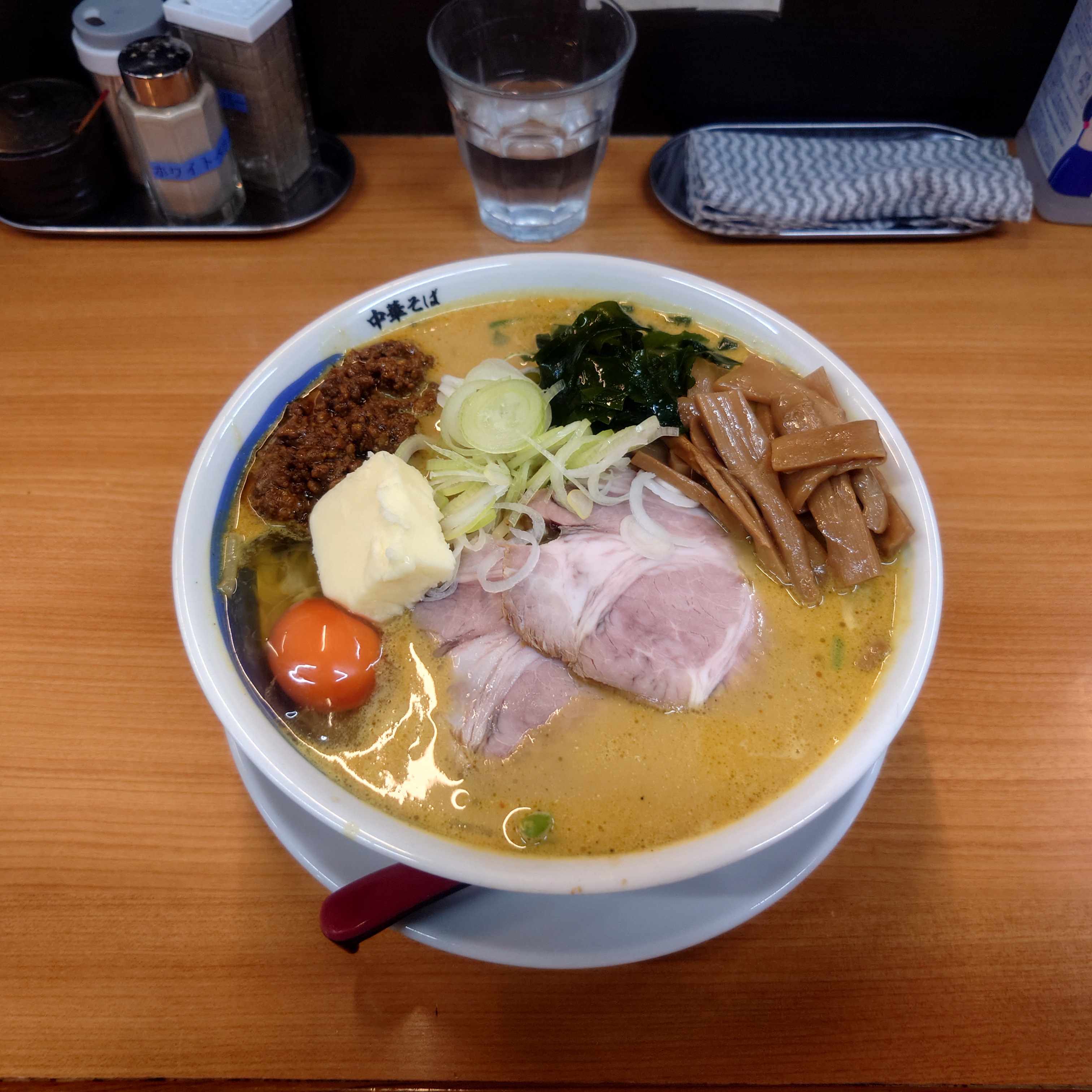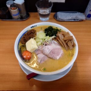 メンマ、、バター、チャーシュー、ねぎ、肉味噌、生卵などですね。