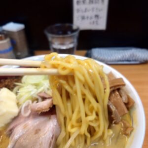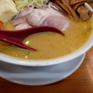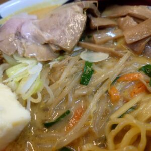 味噌スープが少しまろやかな雰囲気、牛乳やバターの効果でしょうか。中華鍋にもやしなどの野菜を炒めそれにミソスープを作っており、アツアツスープなのが寒い日に嬉しいですね。食べ進めてホットになる美味しいラーメンであり美味しく完食です。