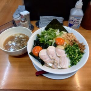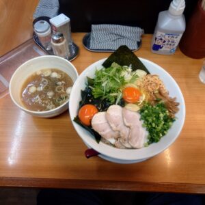 【牡蠣まぜそば+大盛+若芽+生卵】