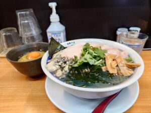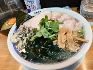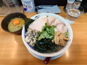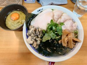 【牡蠣出汁塩ラーメン+牡蠣ソース+生卵+若芽】