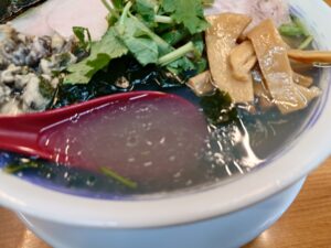 牡蠣出汁ラーメン塩ラーメン¥1,500+牡蠣ソース¥400+カード特典若芽+生卵¥100を注文しました。