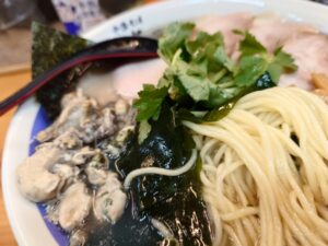 麺の上の牡蠣の身で牡蠣感も楽しめますが、追加注文の牡蠣ソースがまた牡蠣そのもの。牡蠣がしっかりとコーティングされ、まぜそば風にしても美味しいですね。牡蠣ソースで牡蠣の旨味ブーストで牡蠣を楽しみつつも美味しく完食です。