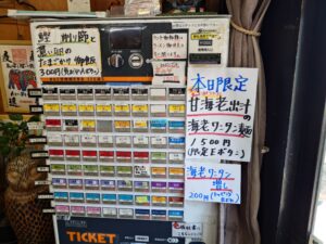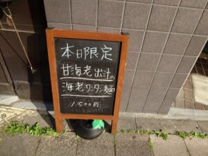 塩のスープは甘海老出汁のスープ。海老の旨味にまろやかな塩テイストが美味しいスープに細めの麺が絡んで美味しい限定ラーメンですね!