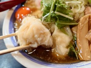 大きな雲吞からはぷりぷりな海老がたっぷり入っており豪勢ですね。
