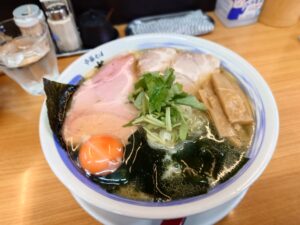 鱧炊きラーメン¥1,300+カード特典若芽+生卵¥100を注文しました。