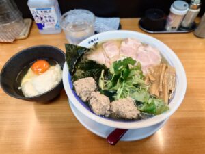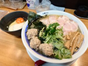 【鴨と北寄貝出汁ラーメン塩+北寄貝ソース+若芽+生卵】