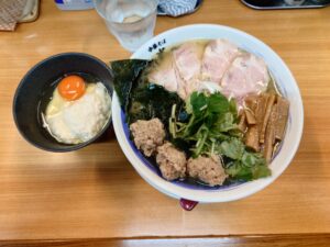 店主さんはちばき屋さん出身。その後神保町覆麺智及川店主に弟子入りされ外弟子になったそうで、神保町覆麺智さんや覆麺智で修業されて独立の東中野花木さんの会員カードも使用できるそうですよ。(会員カード提示でトッピングサービス有)