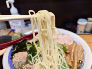 前日もし乃のしじみラーメンをいただいていますが、そのラーメンと比較するとややカエシが強めに感じるスープは鴨×北寄貝。バランスよい旨味の塩ラーメンで美味しいですね!