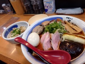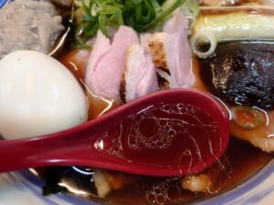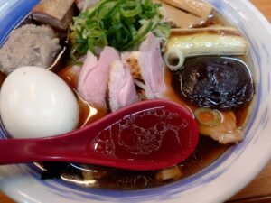 醤油味、煮玉子付き、鴨ロース、フォアグラ入り鴨団子、椎茸、ネギなど。9:00〜17:00お客様のご来店お待ちしております🍥 pic.twitter.com/8ZyRMmVwPs