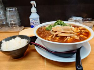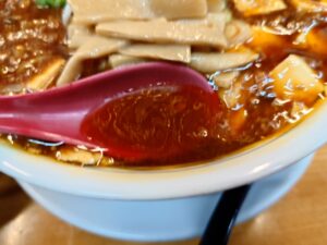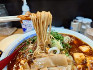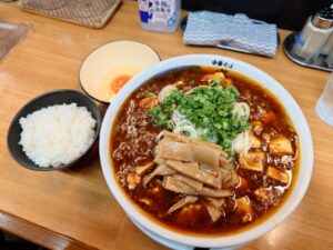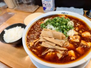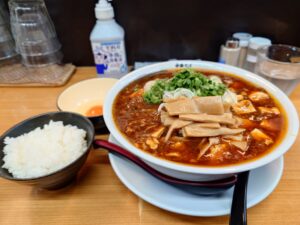 醤油ベースのスープにアツアツの麻婆餡、細い麺が絡んで美味しいマーボーメンですね。