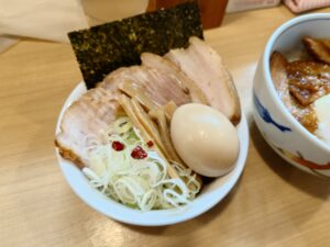 この日は連れと訪問、豚鴨つけを香港シャッフル、燻製玉子で注文していました。