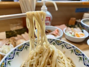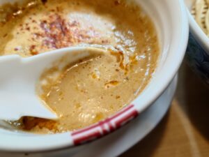 辛味はそこそこに胡麻風味があるスープ、ベースのスープが美味しいので旨味に厚みを感じるスープですね。自家製麺の麺と共に美味しいつけ麺ですね。