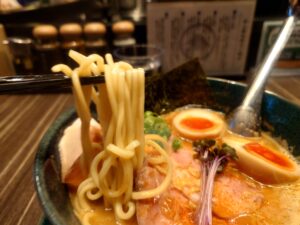 今回の限定はオマール海老を使ったスープ。オマール海老に鶏を使用とのことで旨味に厚みのあるスープで三藤さんらしさを感じるスープが美味しいラーメンですね。
