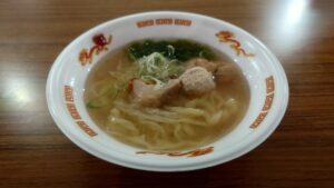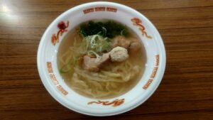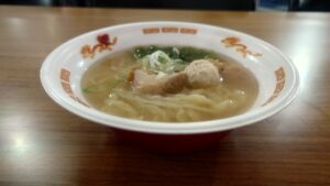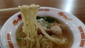 佐野ラーメン特有の青竹手打ち麺。もちっとさもある麺ですね。旨味ふくよかな塩のスープと共においしいラーメンですね。