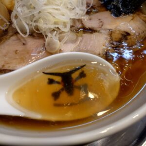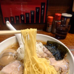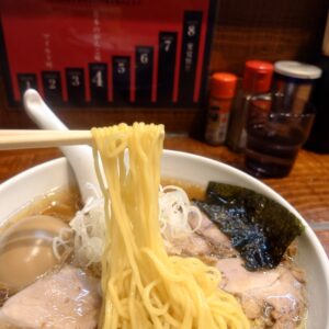 すっきりクリアな醤油スープ。これがまたうまみもくっきり。クリアなのに旨味ふくよかなスープに麺が絡んで美味しいですね!