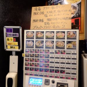 基本のスープとしては塩と正油とのラーメン、つけ麺など。濁りスープは日替わりで内容が変わります。清湯の基本メニューは味の濃さを選べるシステムですね。