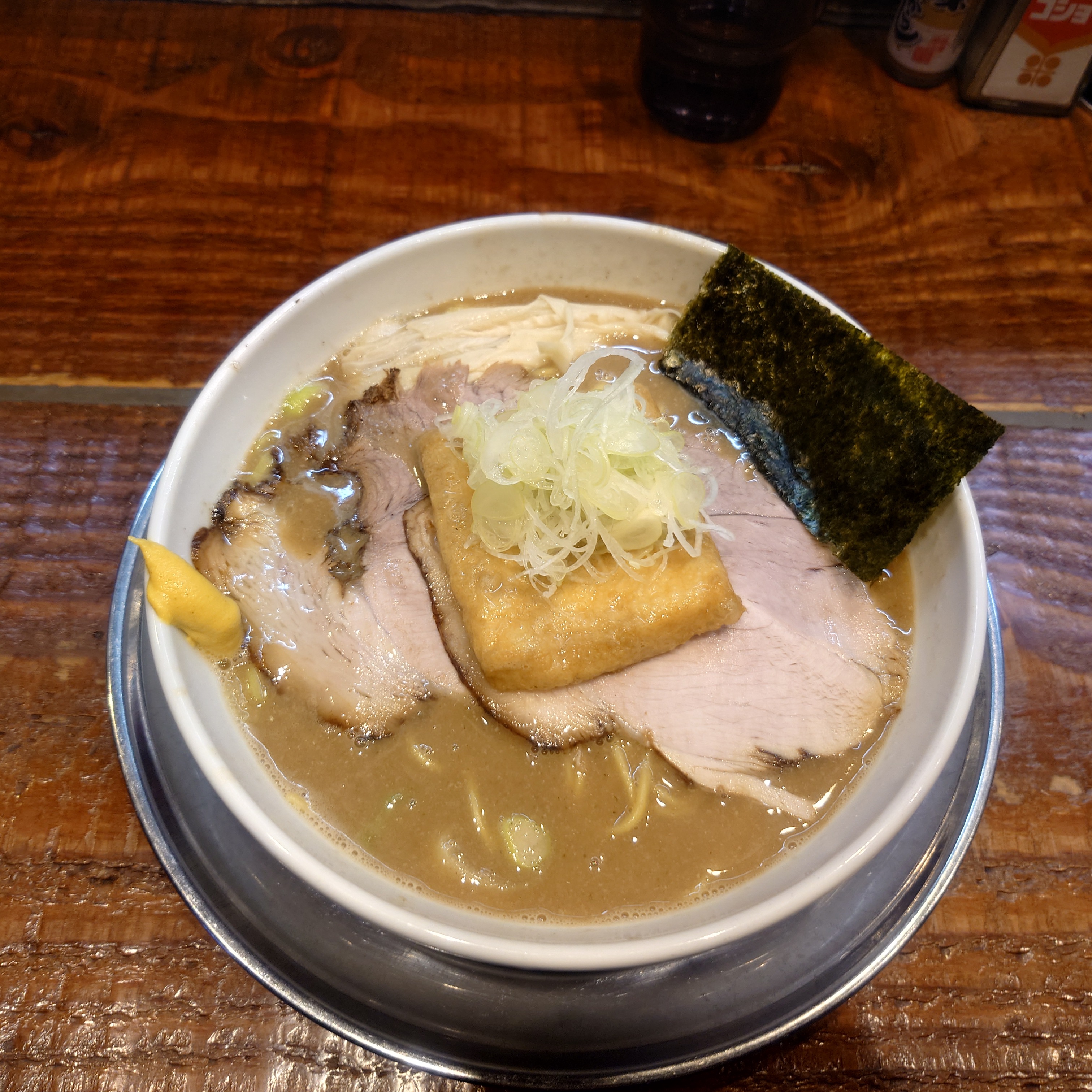 チャーシュー、穂先メンマ、ネギ、のり、油揚げ、洋からしなどですね。