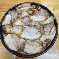 大塚駅に開店して以来してどかんと目立つチャーシューで一躍人気となったお店です。レギュラーメニューはラーメン、チャーシューメン、辛いメニューとなっています。