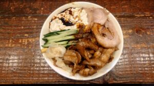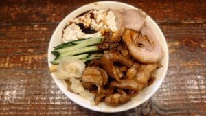 ベースは通常提供のすごい冷し中華。醤油ベースのタレのオーソドックス冷やし中華ダレに太い麺の組み合わせ、焼肉×自家製麵タルタルソースも美味しい組み合わせ。二郎系冷やし中華ですね。
