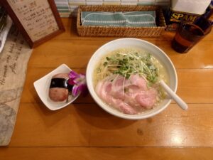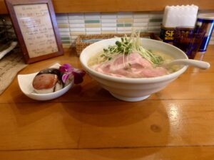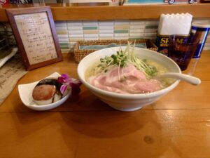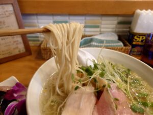 フルルさんの塩ラーメン。鶏の旨味感じるスープに細めの麺の組み合わせ。