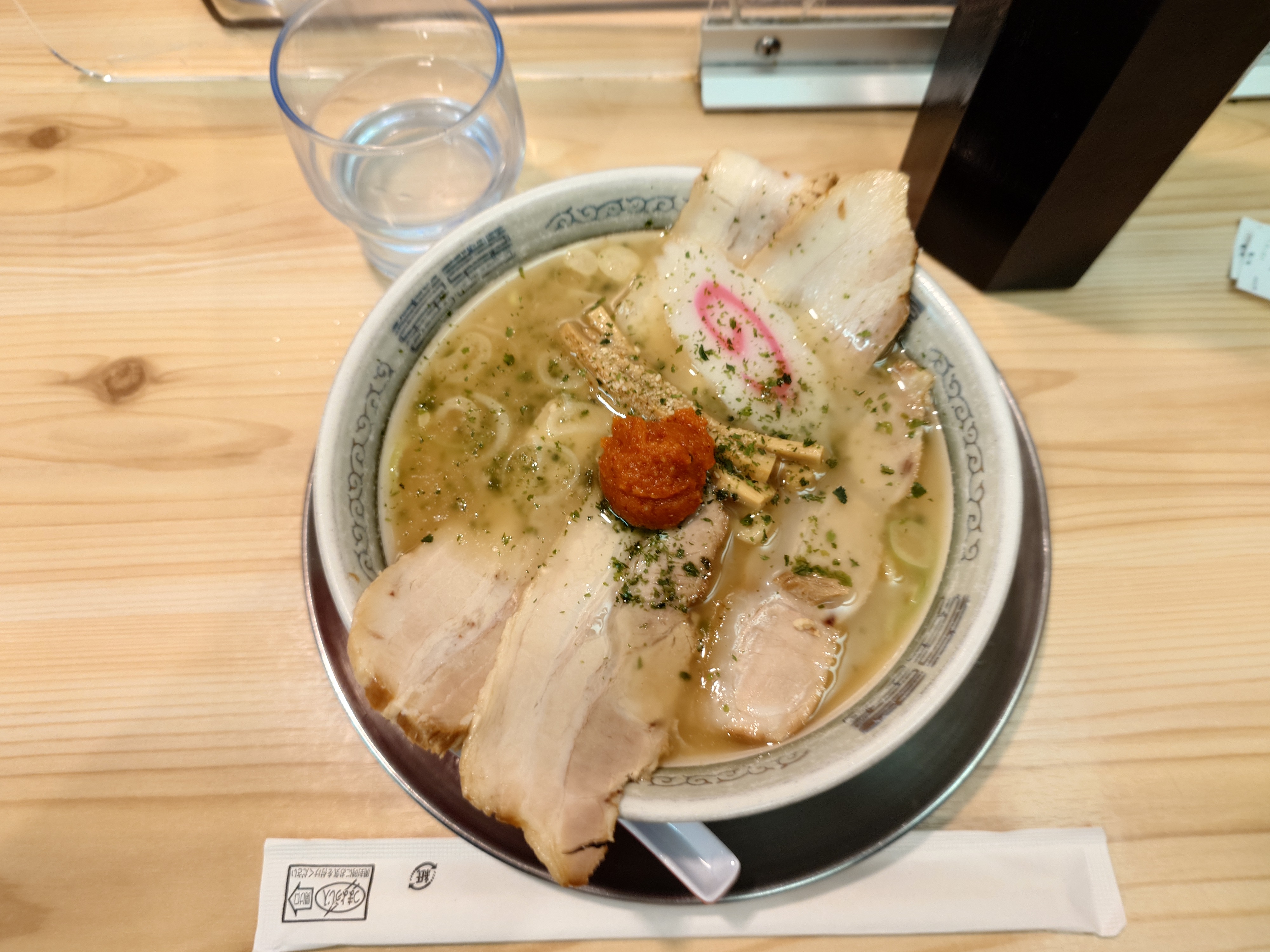 チャーシュー、なると、青のり、メンマ、辛みそですね