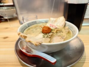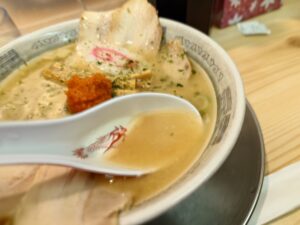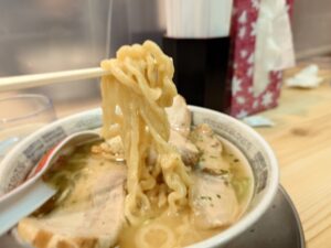 そうぞうしていたよりも魚介感感じるスープですね。ただやはり主役と言えるのは辛みそ。からみそを溶かしていくと一気に味に辛みが加わり辛味噌が美味しく感じるラーメンですね。もっちり麺も美味しいラーメンです。