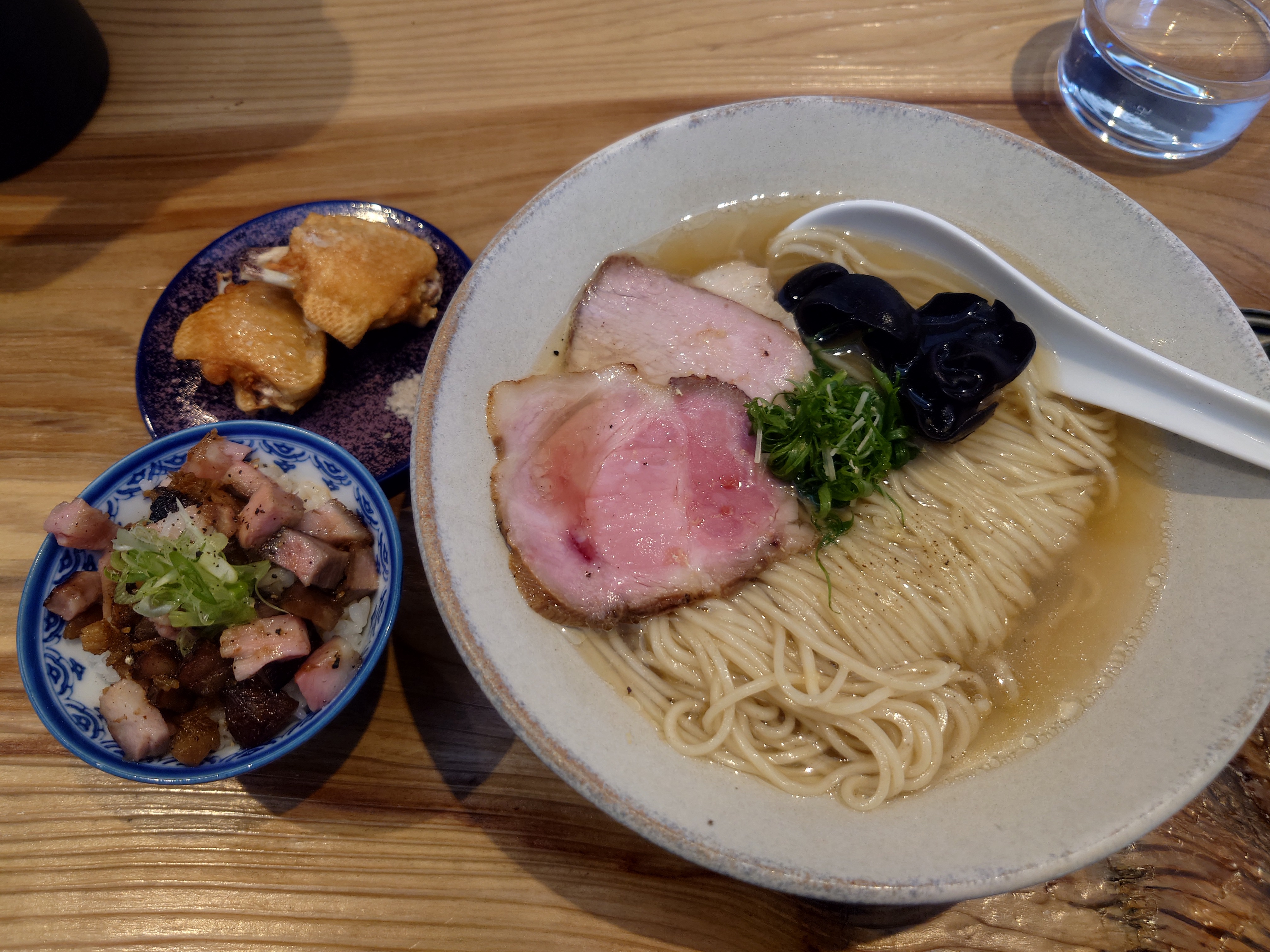 白ランチセット(中華そば白+チャーシュー丼ミニ+手羽唐2個)¥1,850を注文しました。