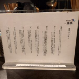 SNSの説明にて「自家製麺、地鶏メインの無化調スープ、添加物はかんすいのみ、限定ラーメンも頻繁にやっております」と記載のあるお店です。