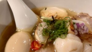 味玉、豚チャーシュー、鶏チャーシュー、かぶ、ホタテなどですね。