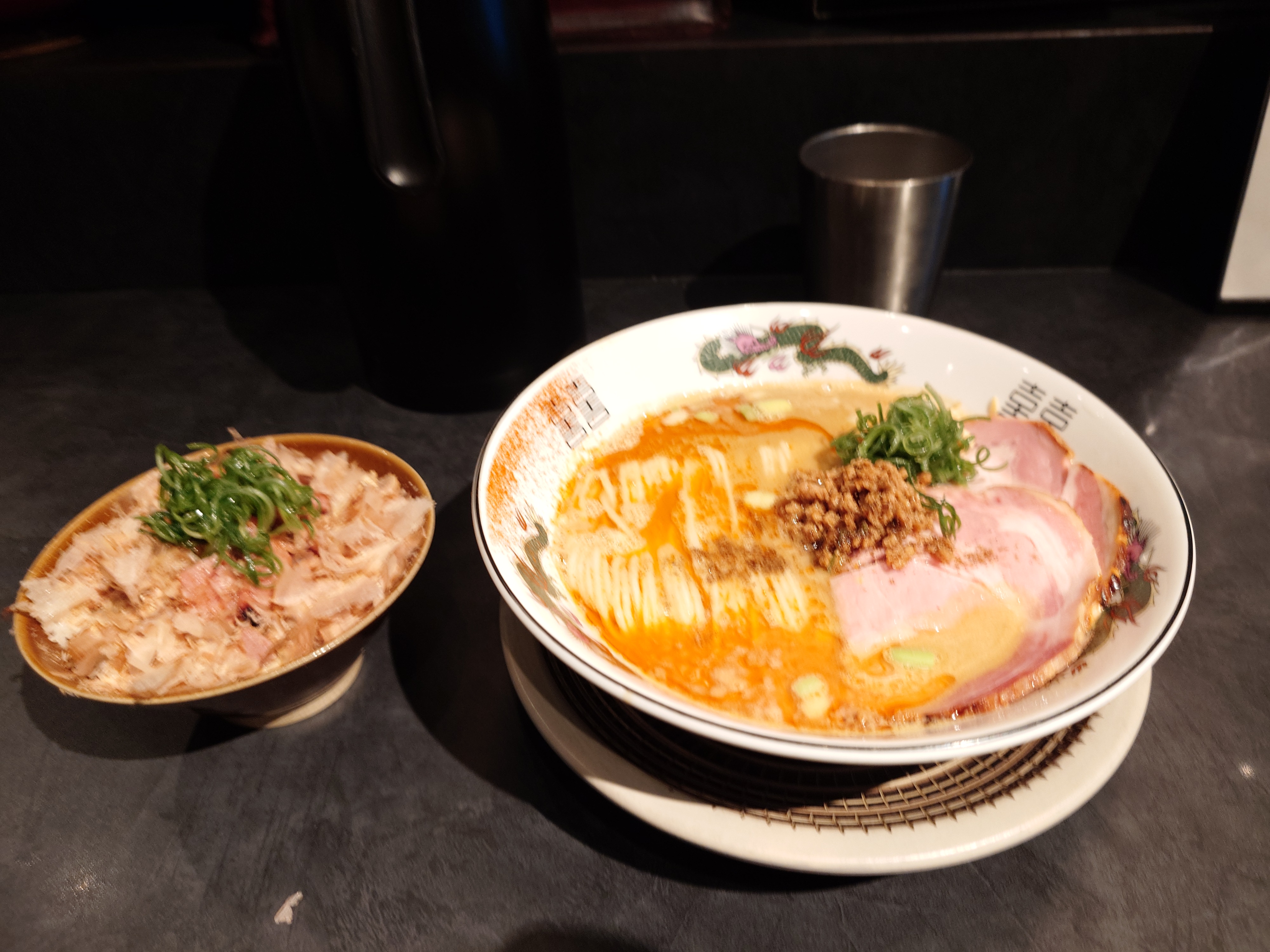 担々麺¥1,350+炙りチャーシュー丼¥500を注文しました。