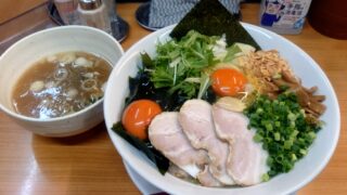 中華そば半ざわ【牡蠣まぜそば+大盛+若芽+生卵】東京都豊島区西巣鴨駅 2025/11/23の限定は牡蠣ソースたっぷり麺