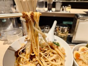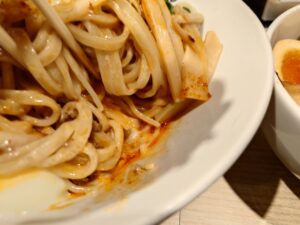 麺にスープはありません。クリーミーに見える担々ソースなタレですね。